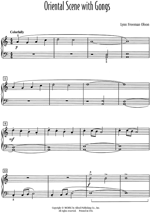 "Oriental Scene with Gongs" Sheet Music by Lynn Freeman Olson