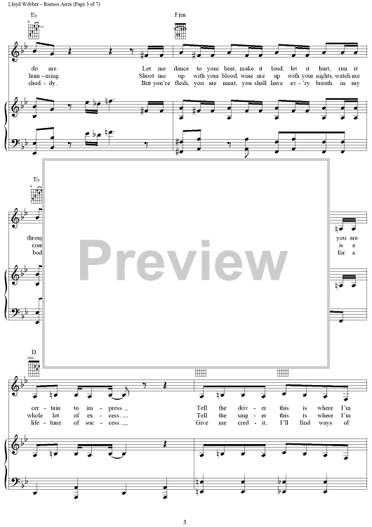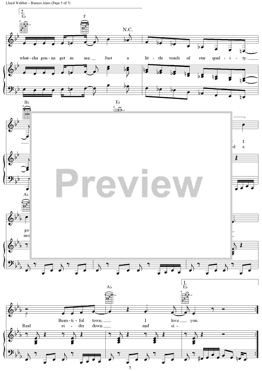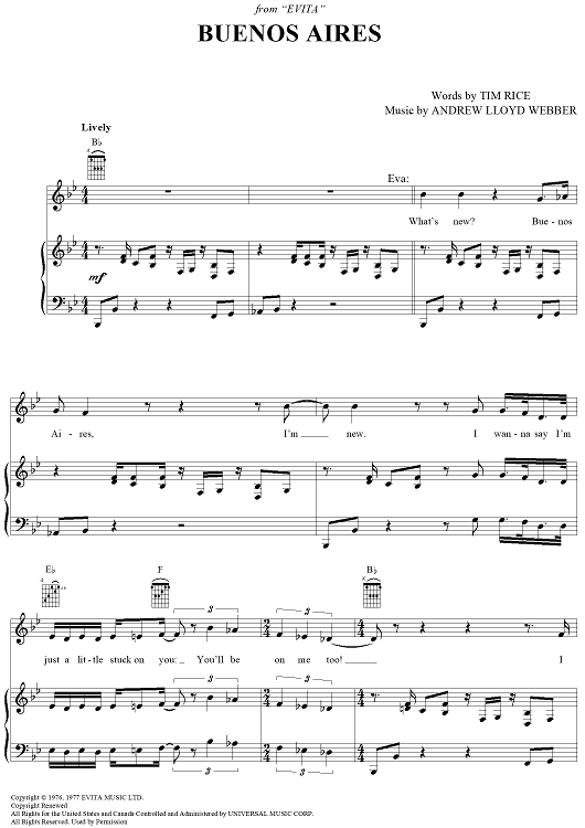 Digital Sheet Music for Buenos Aires by Andrew Lloyd Webber, Tim Rice, Madonna scored for Piano/Vocal/Chords; id:403243