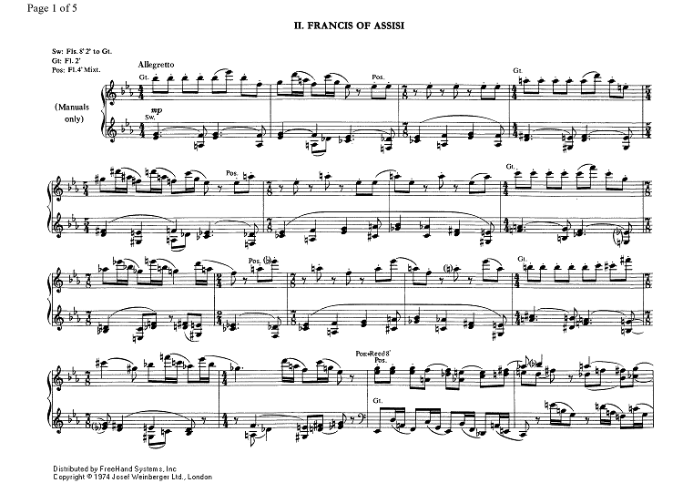 Digital Sheet Music for Francis of Assisi by Malcolm Williamson scored for Organ Solo; id:333447