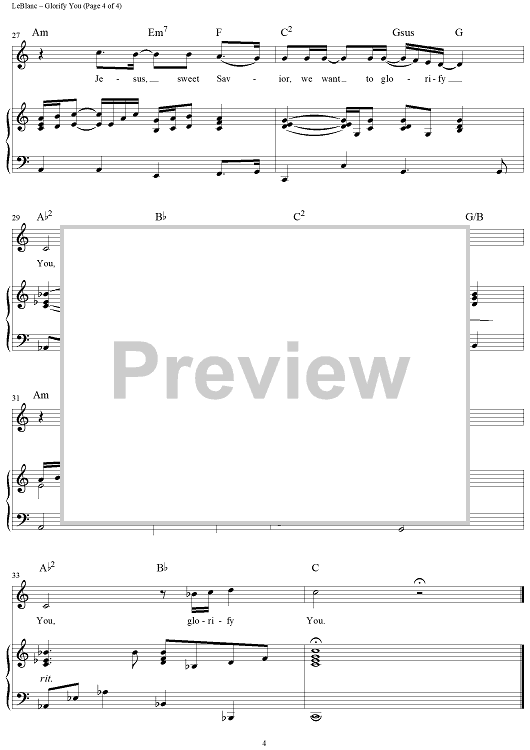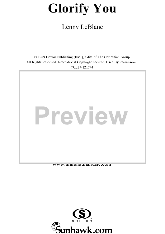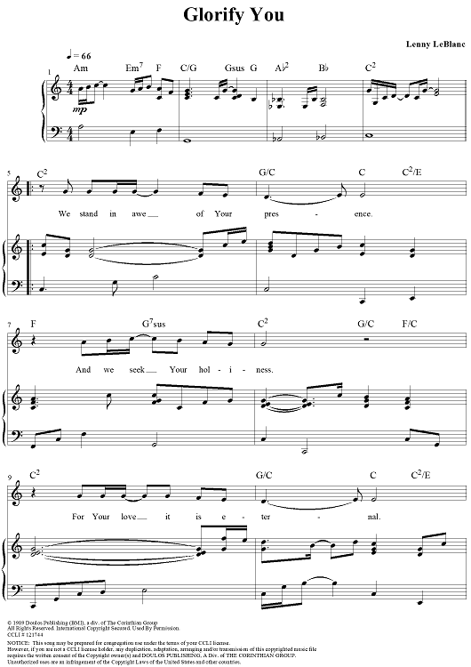 Digital Sheet Music for Glorify You by Lenny LeBlanc scored for Piano/Vocal/Chords; id:220595