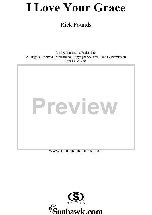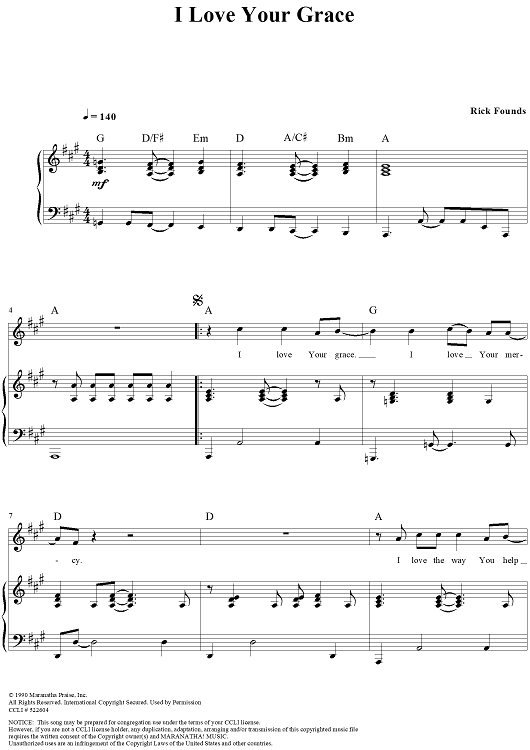 Digital Sheet Music for I Love Your Grace by Rick Founds scored for Piano/Vocal/Chords; id:215544