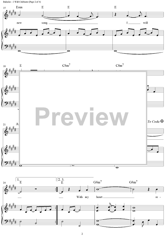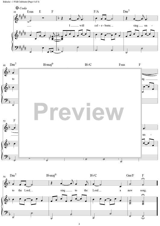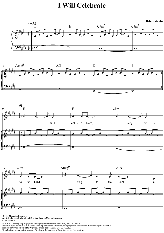 "I Will Celebrate" Sheet Music by Rita Baloche