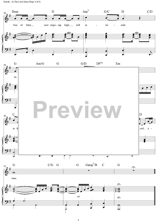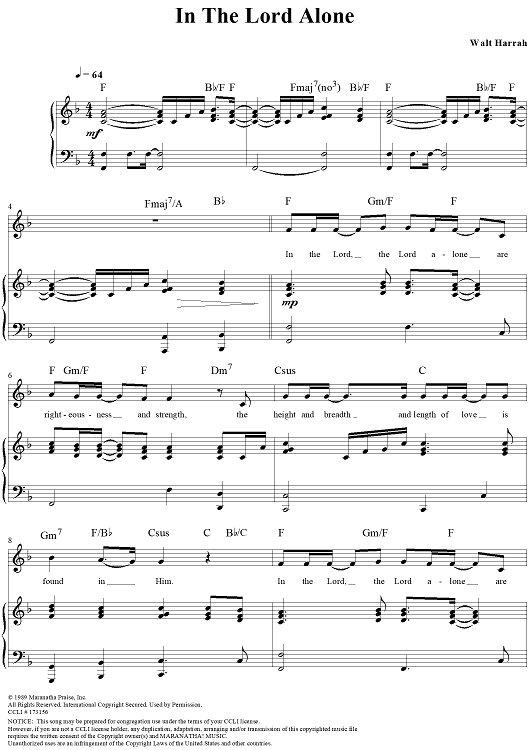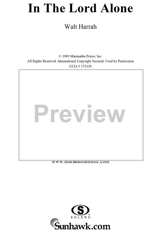 Digital Sheet Music for In the Lord Alone by Walt Harrah scored for Piano/Vocal/Chords; id:215546
