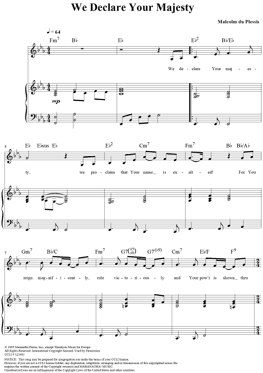 "We Declare Your Majesty" Sheet Music by Malcolm du Plessis