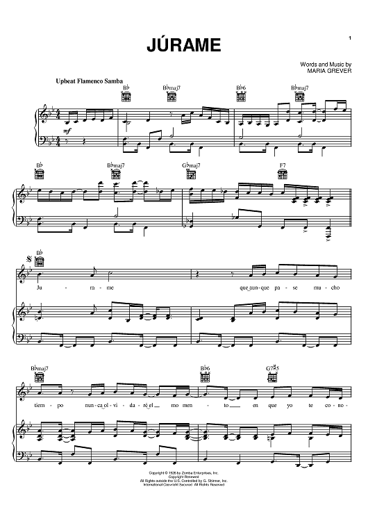 Digital Sheet Music for Jurame by Maria Grever, Andrea Bocelli scored for Piano/Vocal/Chords; id:402177