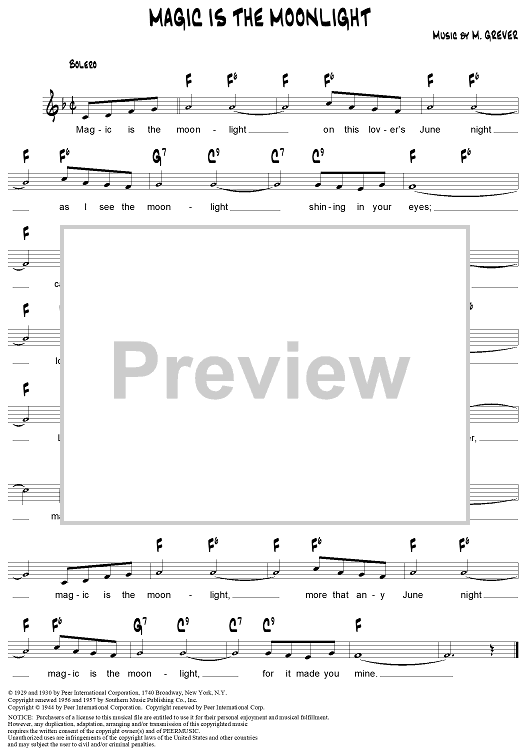 Digital Sheet Music for Magic Is The Moonlight by Maria Grever scored for Lead Sheet; id:309176