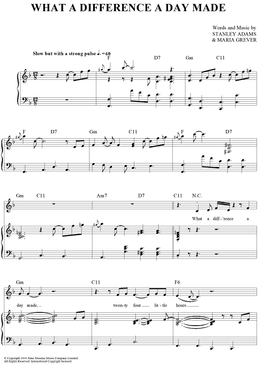 Digital Sheet Music for What A Difference A Day Made by Maria Grever, Stanley Adams, Jamie Cullum scored for Piano/Vocal/Chords; id:378697