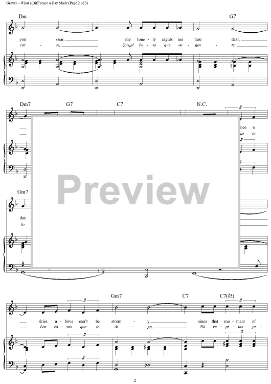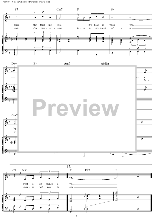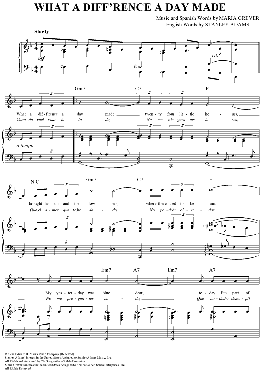 Digital Sheet Music for What a Diff'rence a Day Made by Maria Grever, Frankie Masters, Keene-Bean scored for Piano/Vocal/Chords; id:297256