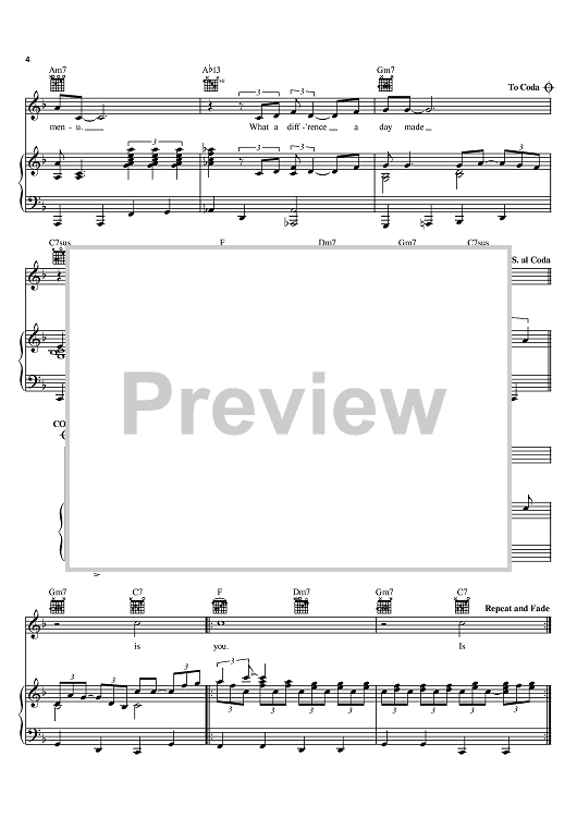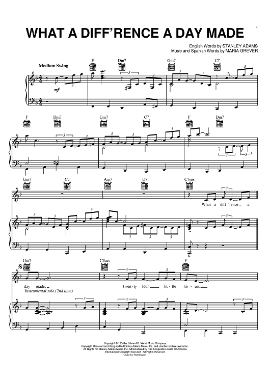 Digital Sheet Music for What A Diff'rence A Day Made by Maria Grever, Stanley Adams, Jamie Cullum scored for Piano/Vocal/Chords; id:380345