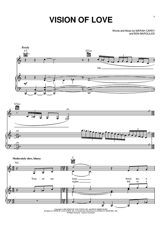 Digital Sheet Music for Vision Of Love by Mariah Carey, Ben Margulies scored for Piano/Vocal/Chords; id:384238