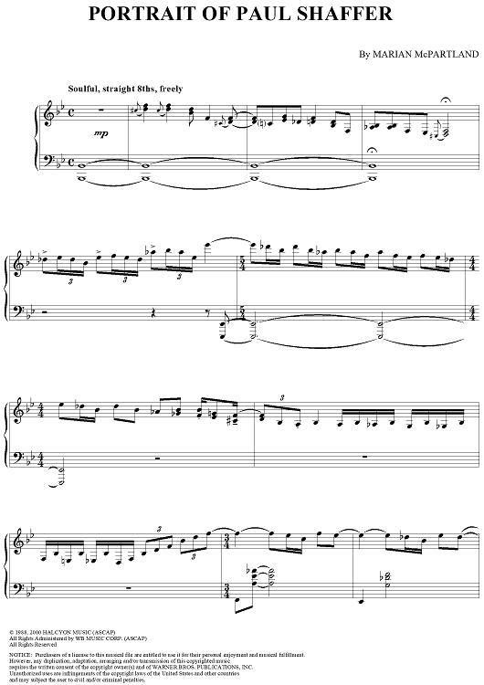 Digital Sheet Music for Portrait of Paul Shaffer by Marian McPartland scored for Piano Solo; id:285365
