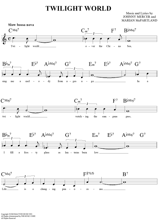 Digital Sheet Music for Twilight World by Johnny Mercer, Marian McPartland scored for Lead Sheet; id:109168