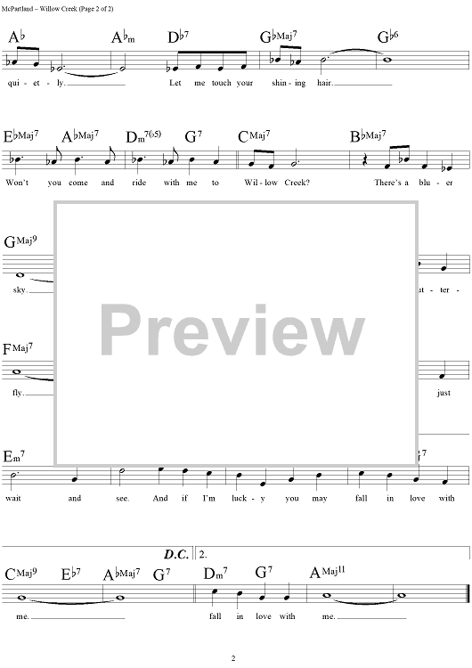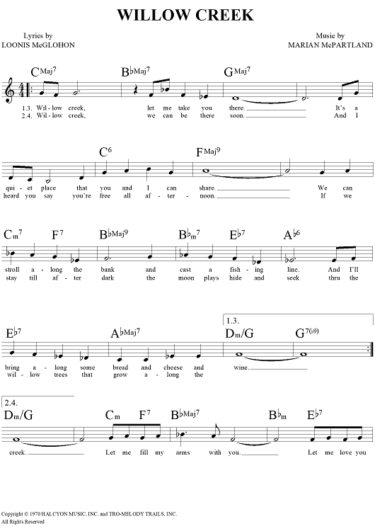 Digital Sheet Music for Willow Creek by Marian McPartland, Loonis McGohon scored for Lead Sheet; id:109171