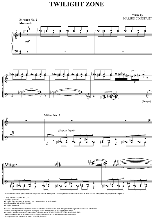 Digital Sheet Music for Twilight Zone by Marius Constant scored for Piano Solo; id:289023