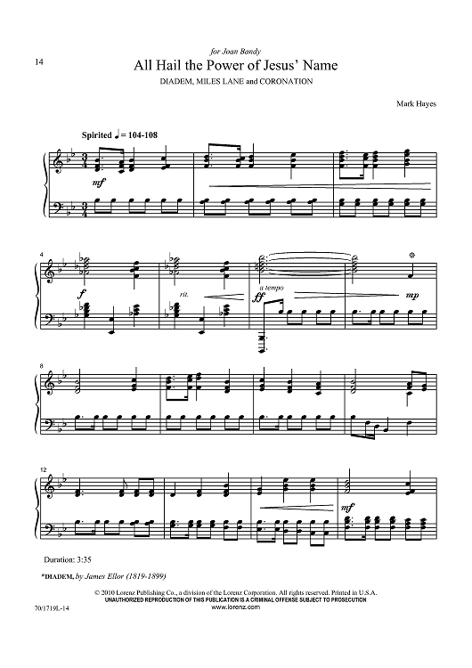 Digital Sheet Music for All Hail the Power of Jesus’ Name by Various, Mark Hayes scored for Piano Solo; id:433413