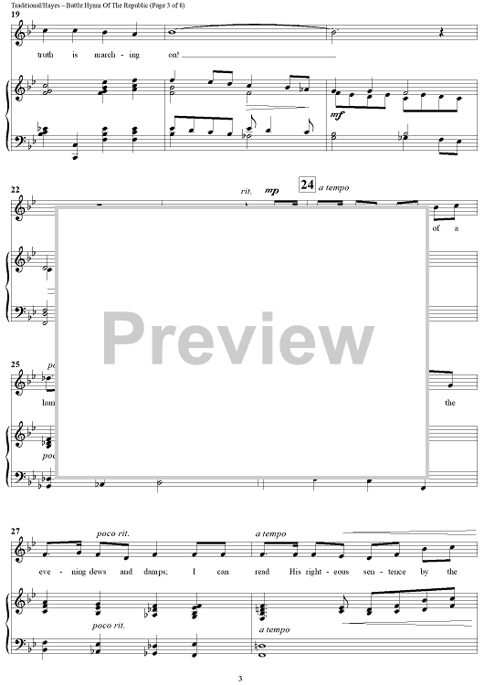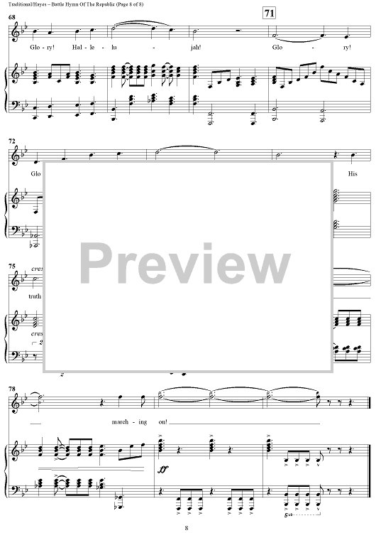 "Battle Hymn Of The Republic" Sheet Music by Traditional American Folk Melody