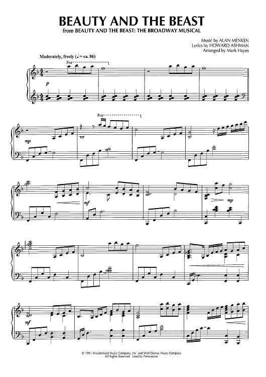 Digital Sheet Music for Beauty And The Beast (from the Broadway Musical) by Alan Menken, Mark Hayes, Howard Ashman scored for Piano Solo; id:467805