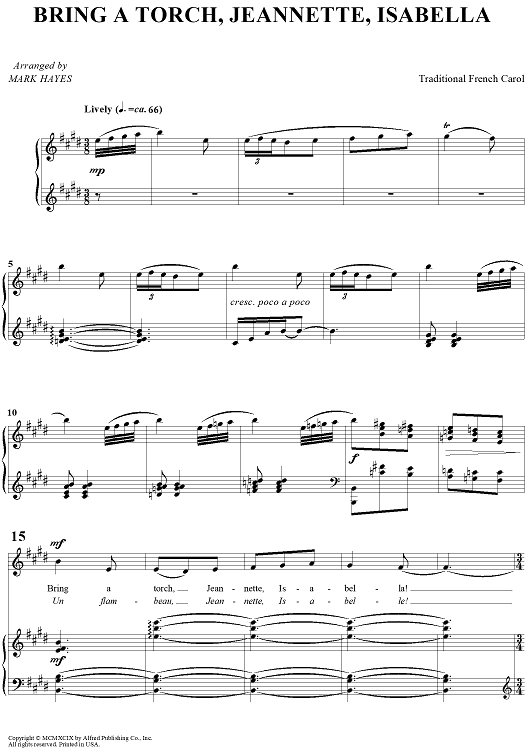 "Bring A Torch, Jeannette, Isabella" Sheet Music by Traditional French Carol