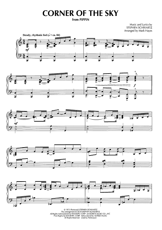 Digital Sheet Music for Corner Of The Sky - from Pippin by Stephen Schwartz, Mark Hayes scored for Piano Solo; id:467807