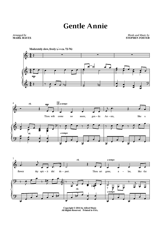 "Gentle Annie" Sheet Music by Stephen Foster