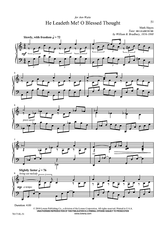 Digital Sheet Music for He Leadeth Me! O Blessed Thought by Mark Hayes, William B. Bradbury scored for Piano Solo; id:433420