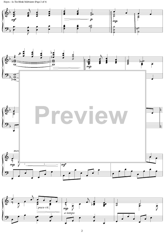 Digital Sheet Music for In the Bleak Midwinter by Mark Hayes, Gustav Holst scored for Piano Solo; id:434558
