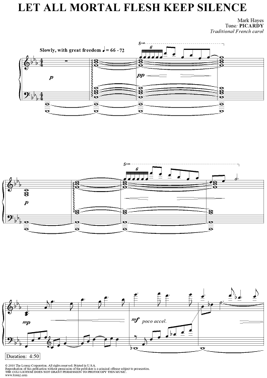 Digital Sheet Music for Let All Mortal Flesh Keep Silence by Mark Hayes, Traditional French Carol scored for Piano Solo; id:434554