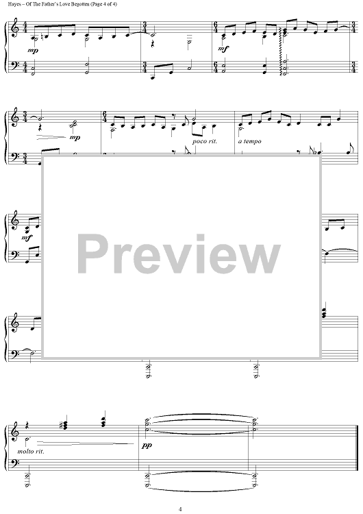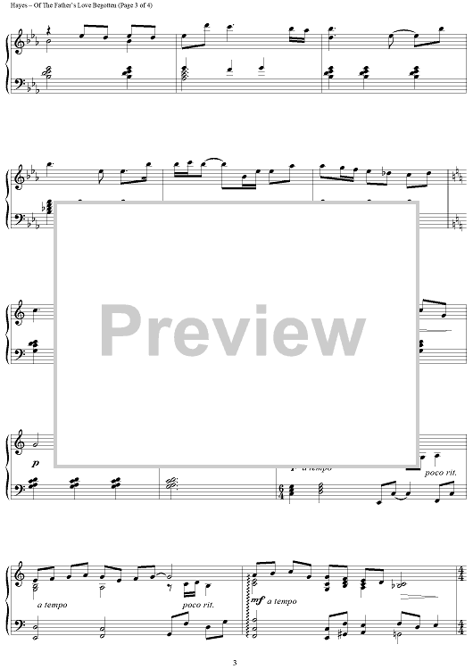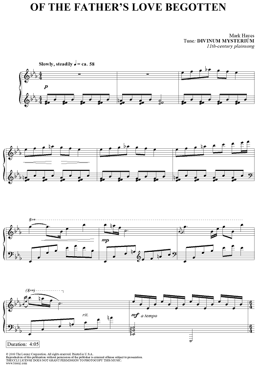 Digital Sheet Music for Of the Father’s Love Begotten by Mark Hayes, Plainsong scored for Piano Solo; id:434556