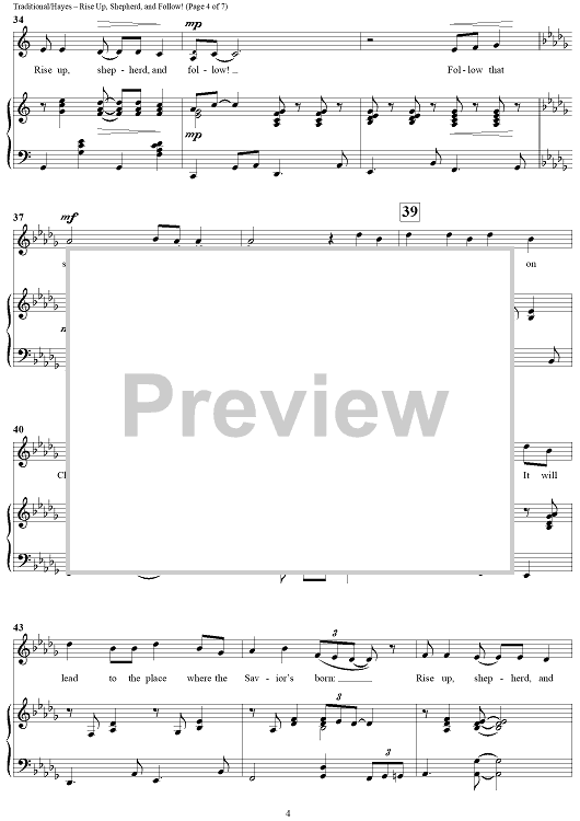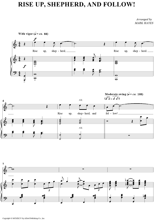 Digital Sheet Music for Rise Up, Shepherd, And Follow! by Mark Hayes, Spiritual, Jay Althouse scored for Piano/Vocal; id:440962