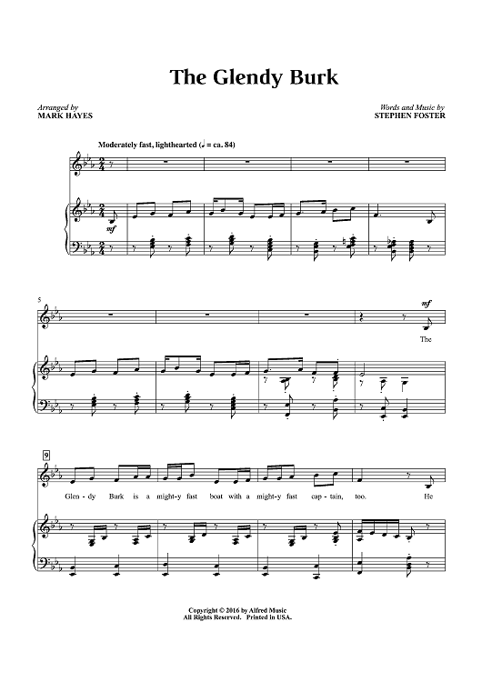 "The Glendy Burk" Sheet Music by Stephen Foster