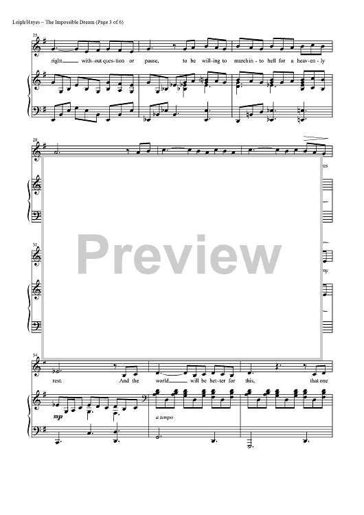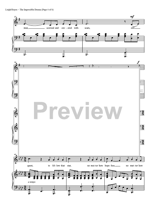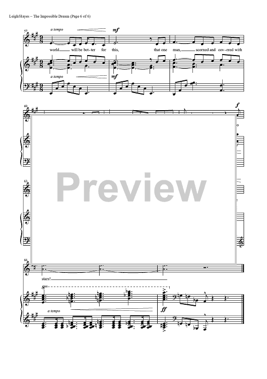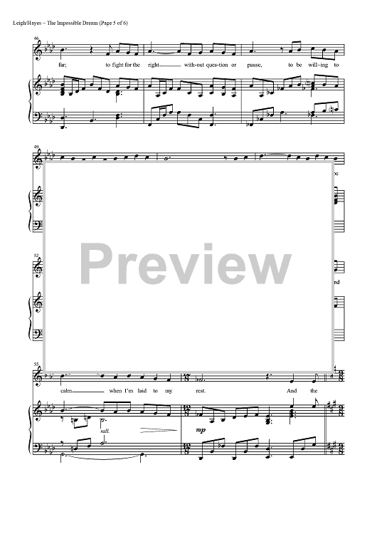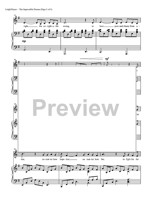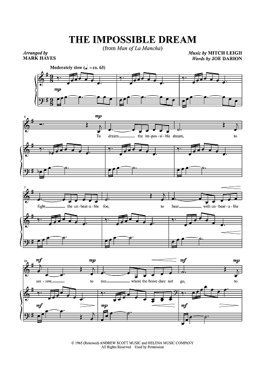 Digital Sheet Music for The Impossible Dream by Mitch Leigh, Joe Darion, Mark Hayes scored for Piano/Vocal; id:453479