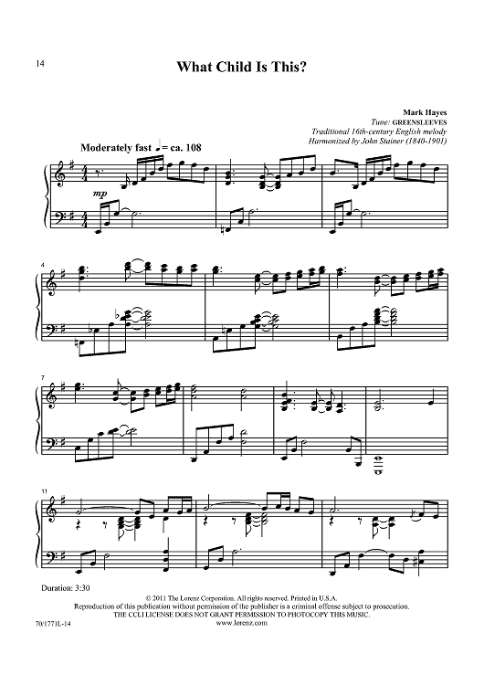 Digital Sheet Music for What Child Is This? by Mark Hayes, Traditional English Melody scored for Piano Solo; id:433400