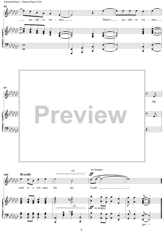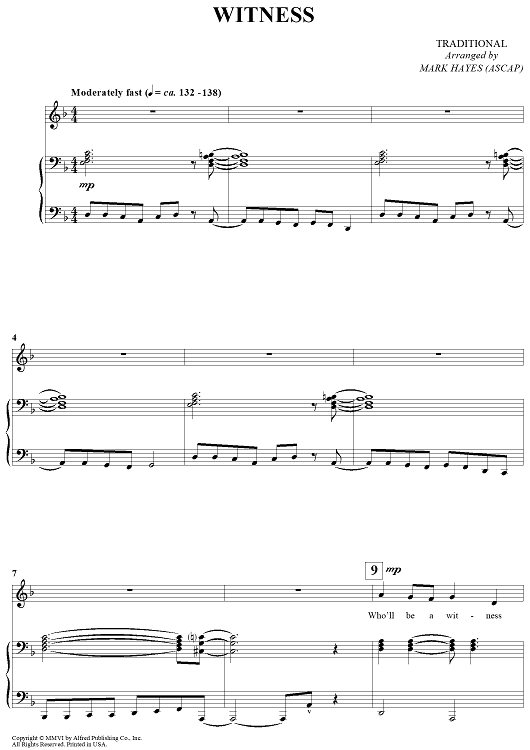 "Witness" Sheet Music by Traditional
