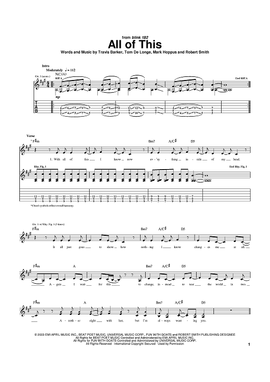 Digital Sheet Music for All Of This by Travis Barker, Mark Hoppus, blink-182, Tom DeLonge scored for Guitar Tab; id:373348