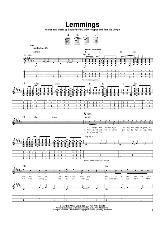 Digital Sheet Music for Lemmings by Mark Hoppus, blink-182, Tom DeLonge, Scott Raynor scored for Guitar Tab; id:370588