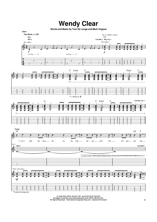 Digital Sheet Music for Wendy Clear by Mark Hoppus, blink-182, Tom DeLonge scored for Guitar Tab; id:370597