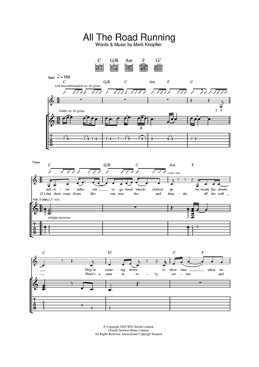 Digital Sheet Music for All The Road Running by Mark Knopfler, Emmylou Harris scored for Guitar Tab; id:388449