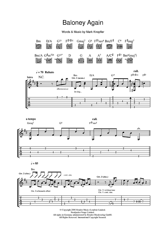 Digital Sheet Music for Baloney Again by Mark Knopfler scored for Guitar Tab; id:401350