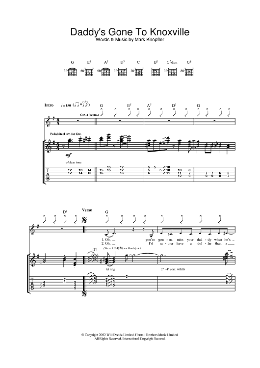 Digital Sheet Music for Daddy's Gone To Knoxville by Mark Knopfler scored for Guitar Tab; id:377987