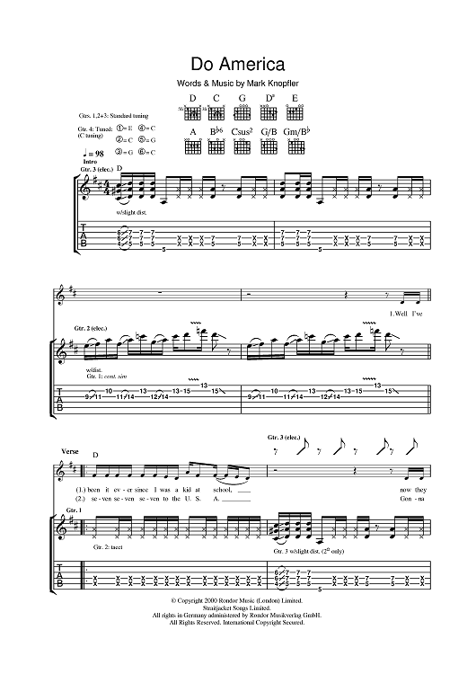 Digital Sheet Music for Do America by Mark Knopfler scored for Guitar Tab; id:401360