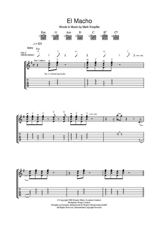 Digital Sheet Music for El Macho by Mark Knopfler scored for Guitar Tab; id:401353