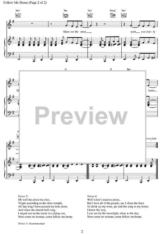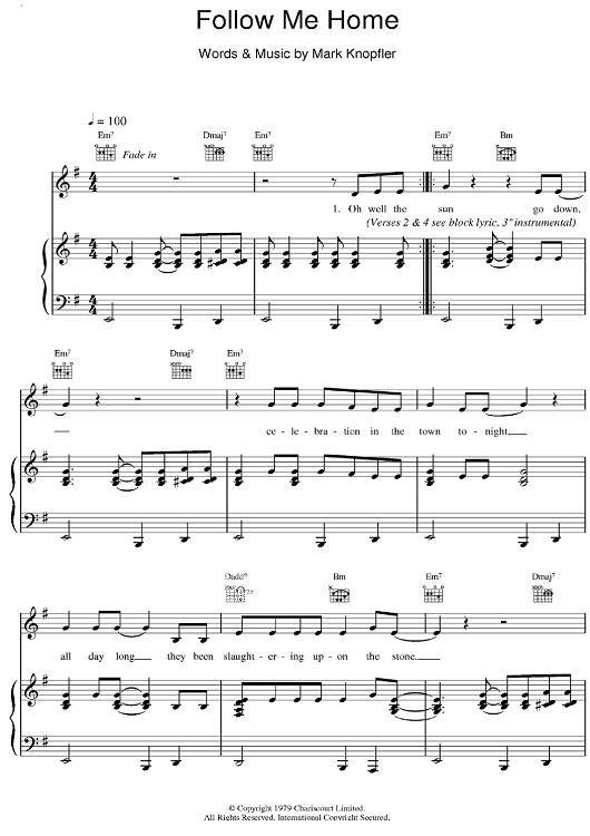 Digital Sheet Music for Follow Me Home by Mark Knopfler, Dire Straits scored for Piano/Vocal/Chords; id:376337