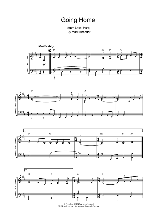 Digital Sheet Music for Going Home by Mark Knopfler scored for Piano; id:380802