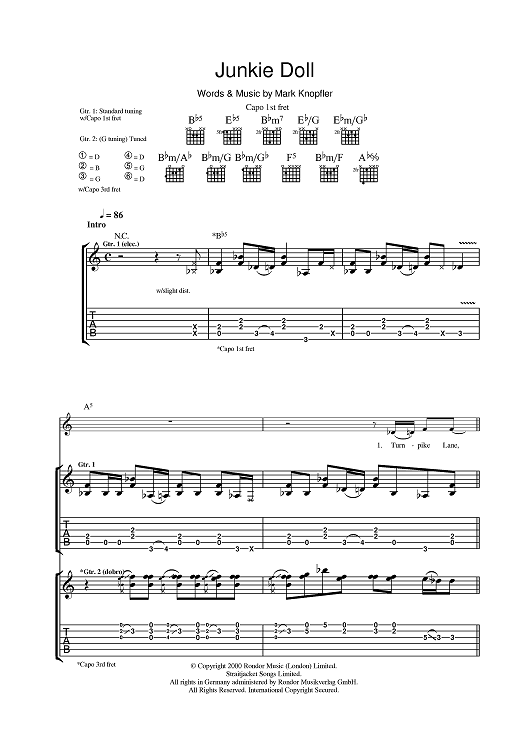 Digital Sheet Music for Junkie Doll by Mark Knopfler scored for Guitar Tab; id:401357