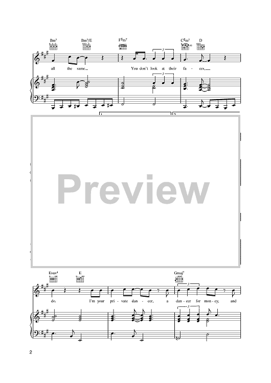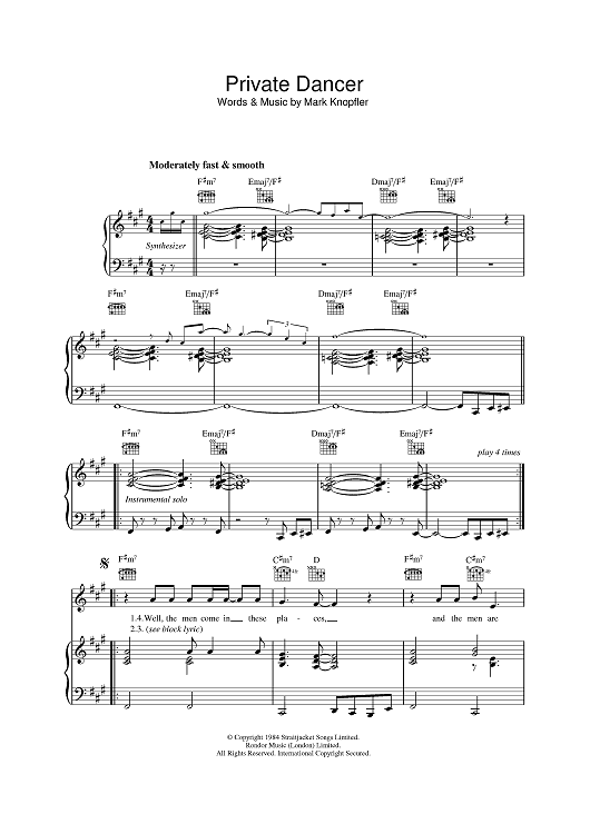Digital Sheet Music for Private Dancer by Tina Turner, Mark Knopfler scored for Piano/Vocal/Chords; id:387860