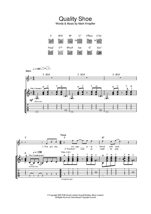 Digital Sheet Music for Quality Shoe by Mark Knopfler scored for Guitar Tab; id:377980