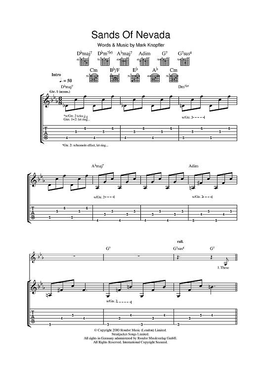 Digital Sheet Music for Sands Of Nevada by Mark Knopfler scored for Guitar Tab; id:401358