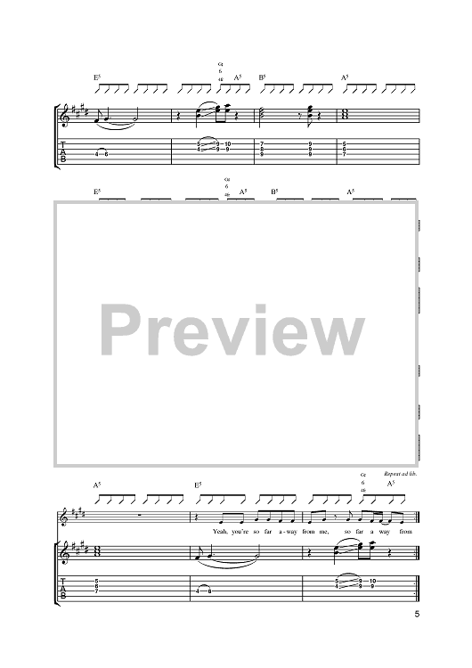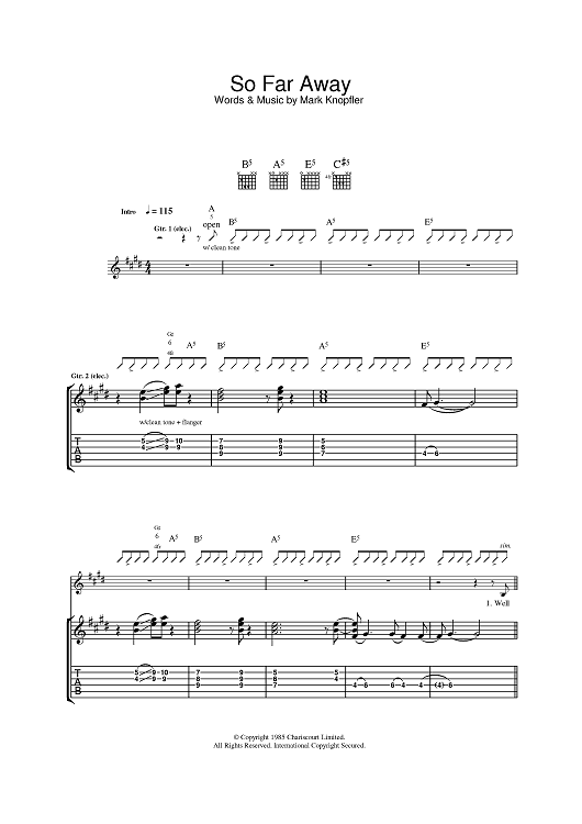 Digital Sheet Music for So Far Away by Mark Knopfler, Dire Straits scored for Guitar Tab; id:388466
