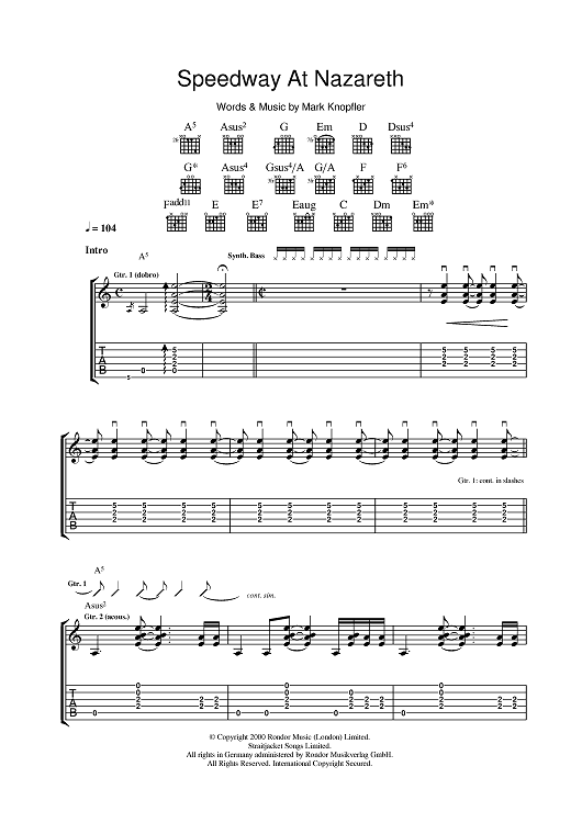 Digital Sheet Music for Speedway At Nazareth by Mark Knopfler scored for Guitar Tab; id:401356