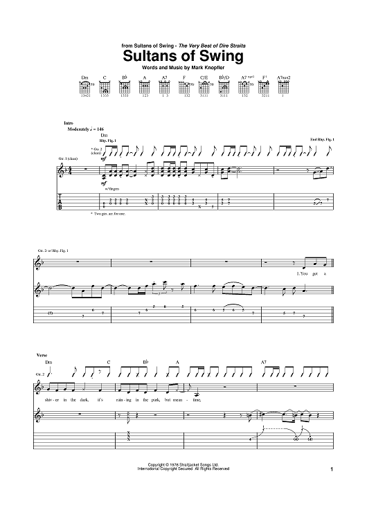 Digital Sheet Music for Sultans Of Swing by Mark Knopfler, Dire Straits scored for Guitar Tab; id:372590